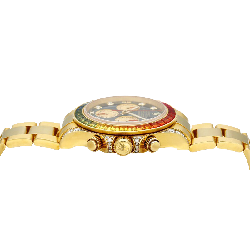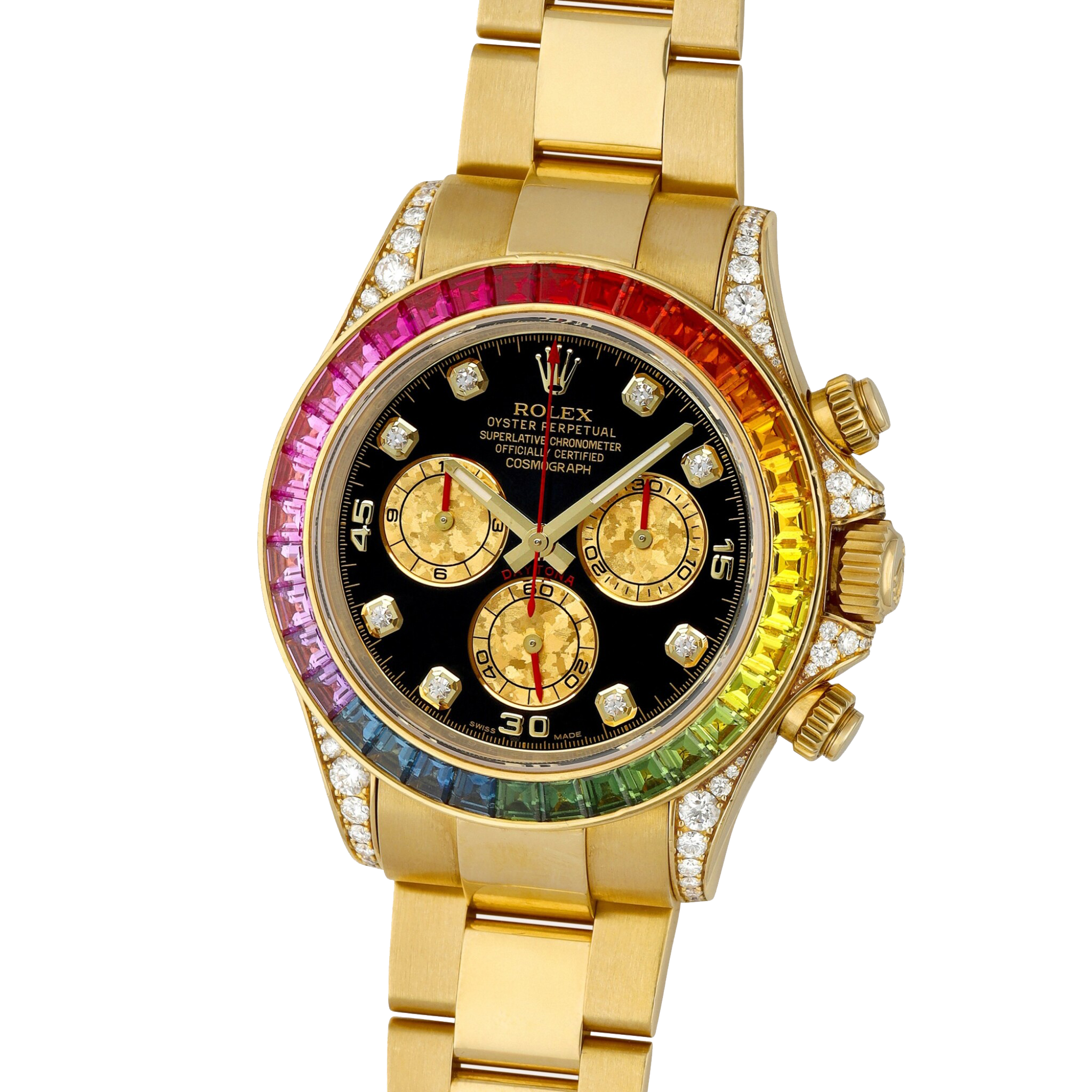 Rolex Daytona 116598RBOW ‘Rainbow’ Yellow Gold Black Diamond Dial Sapphire Bezel