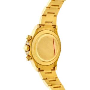 The black lacquered dial provides the perfect contrast, featuring diamond-set hour markers and yellow gold subdials with a textured finish, adding depth and elegance to the design. Powered by Rolex’s legendary chronograph movement, the Daytona offers precision timing and high performance, embodying its motorsport heritage.